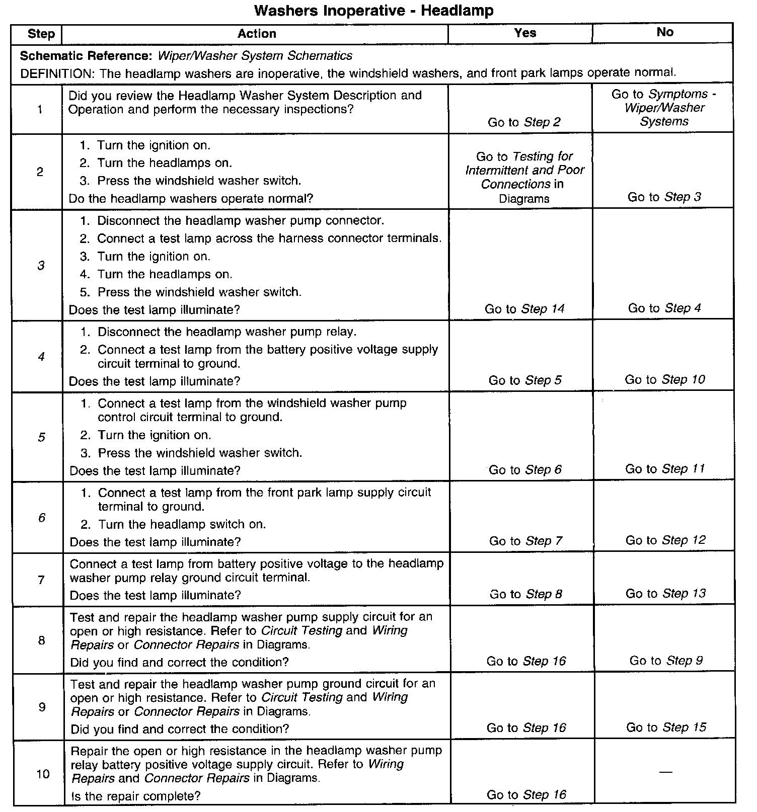 The number(s) below refer to the step number(s) on the diagnostic table.