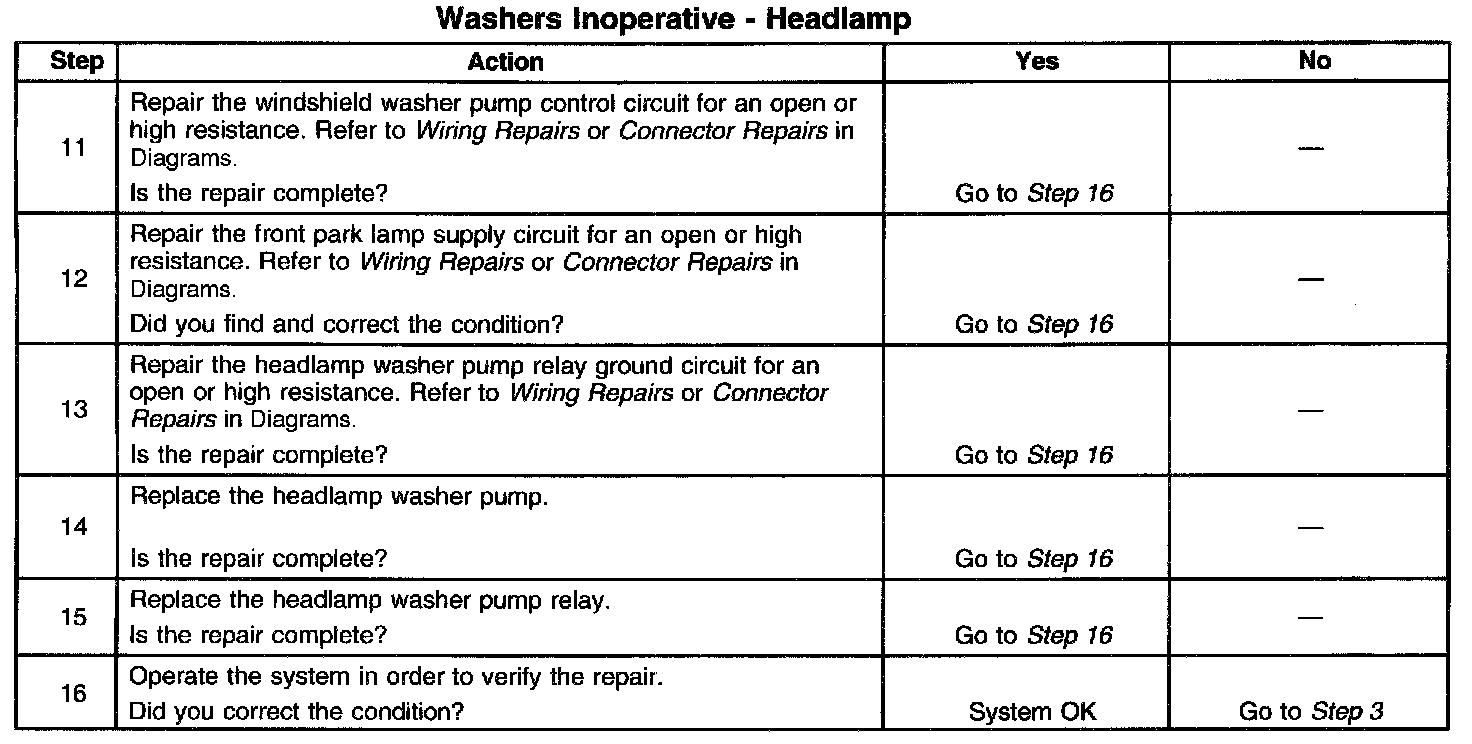 5. Tests the washer pump control circuit to the headlamp washer pump relay.