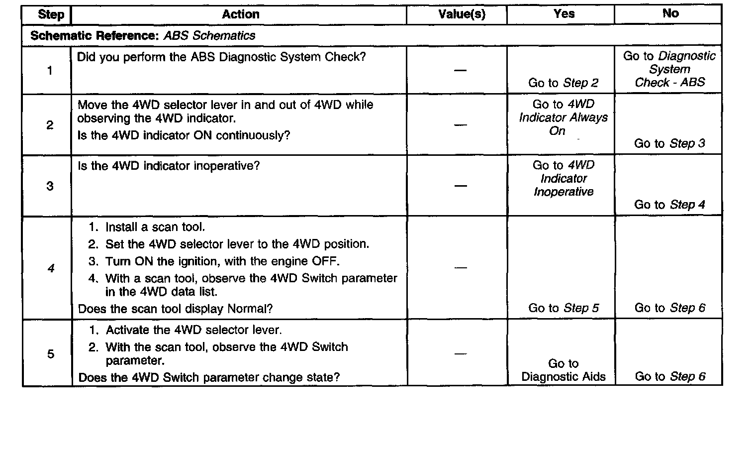 6. This step tests the 4WD switch.