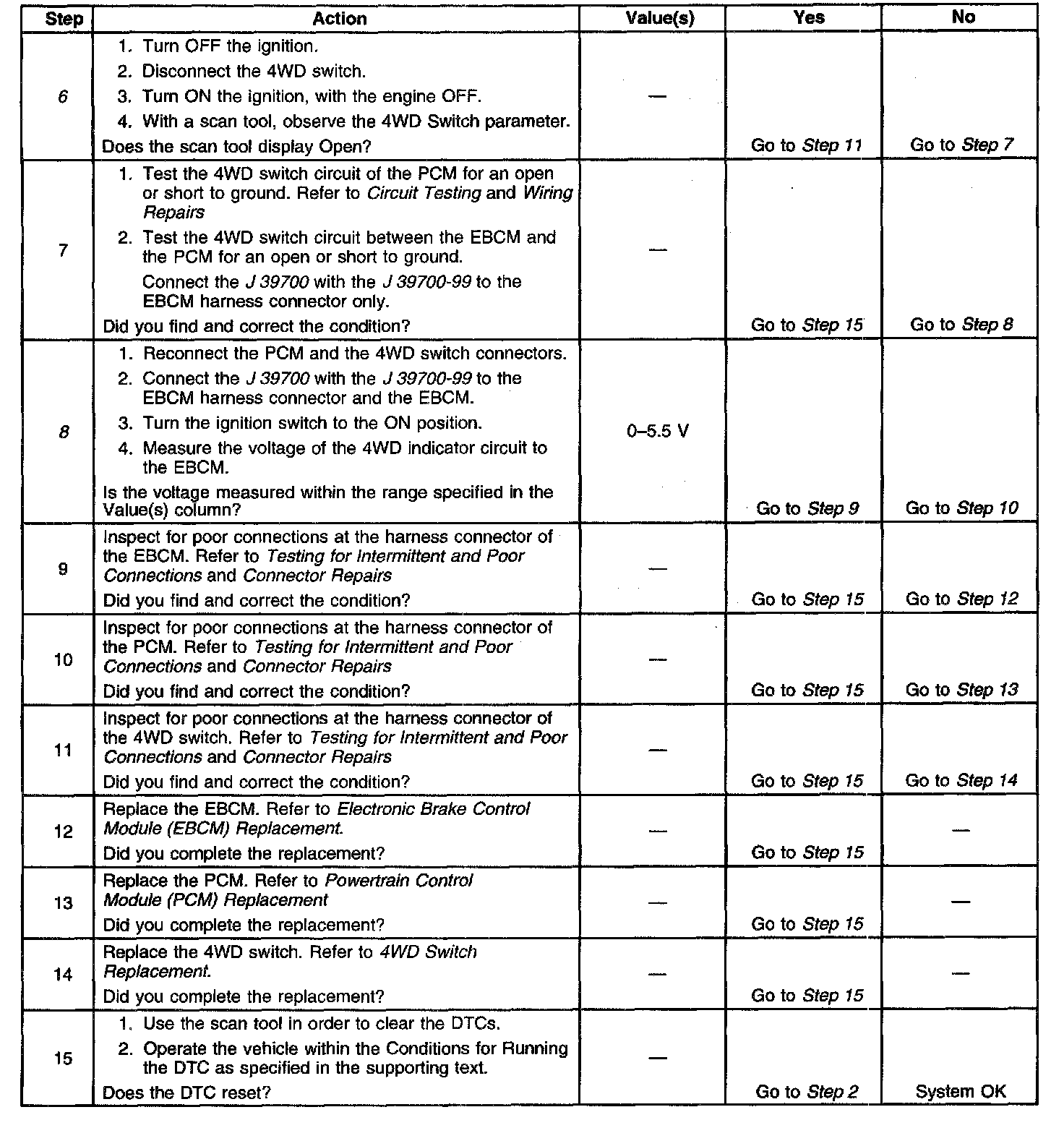 ^ A malfunction exists if the EBCM detects an open in the 4WD Signal circuit.