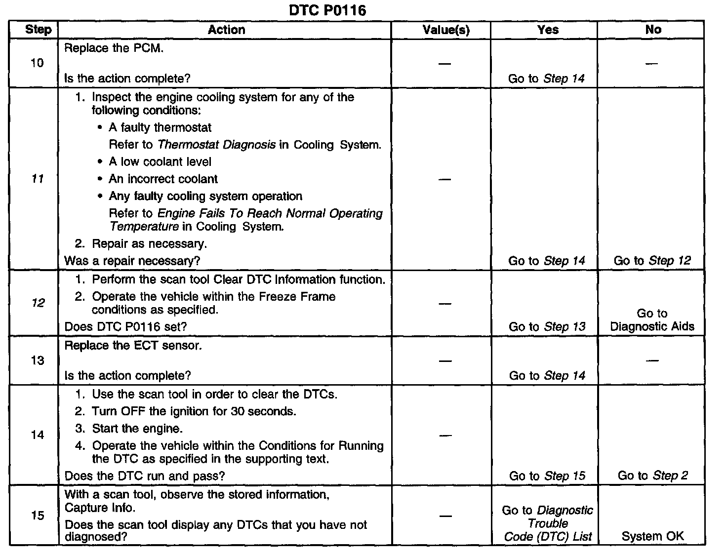 12. This step determines if DTC P0116 is the result of a hard failure or an intermittent condition.