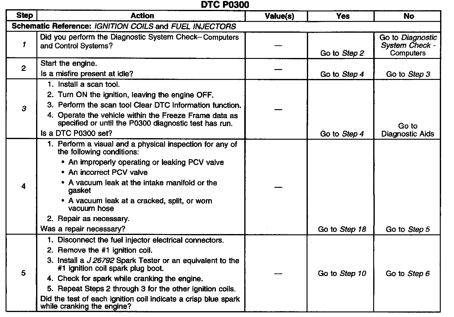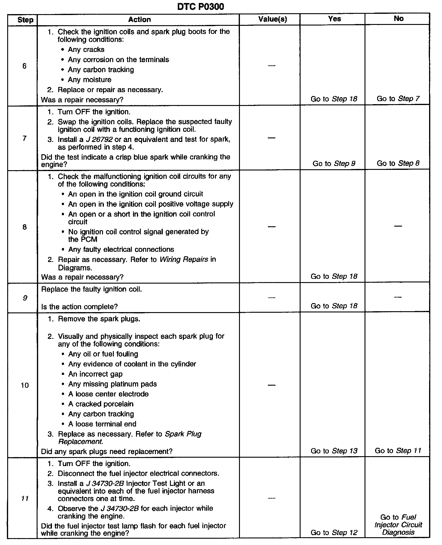 12. Faulty fuel injectors can cause a misfire condition and a DTC P0300 to set.