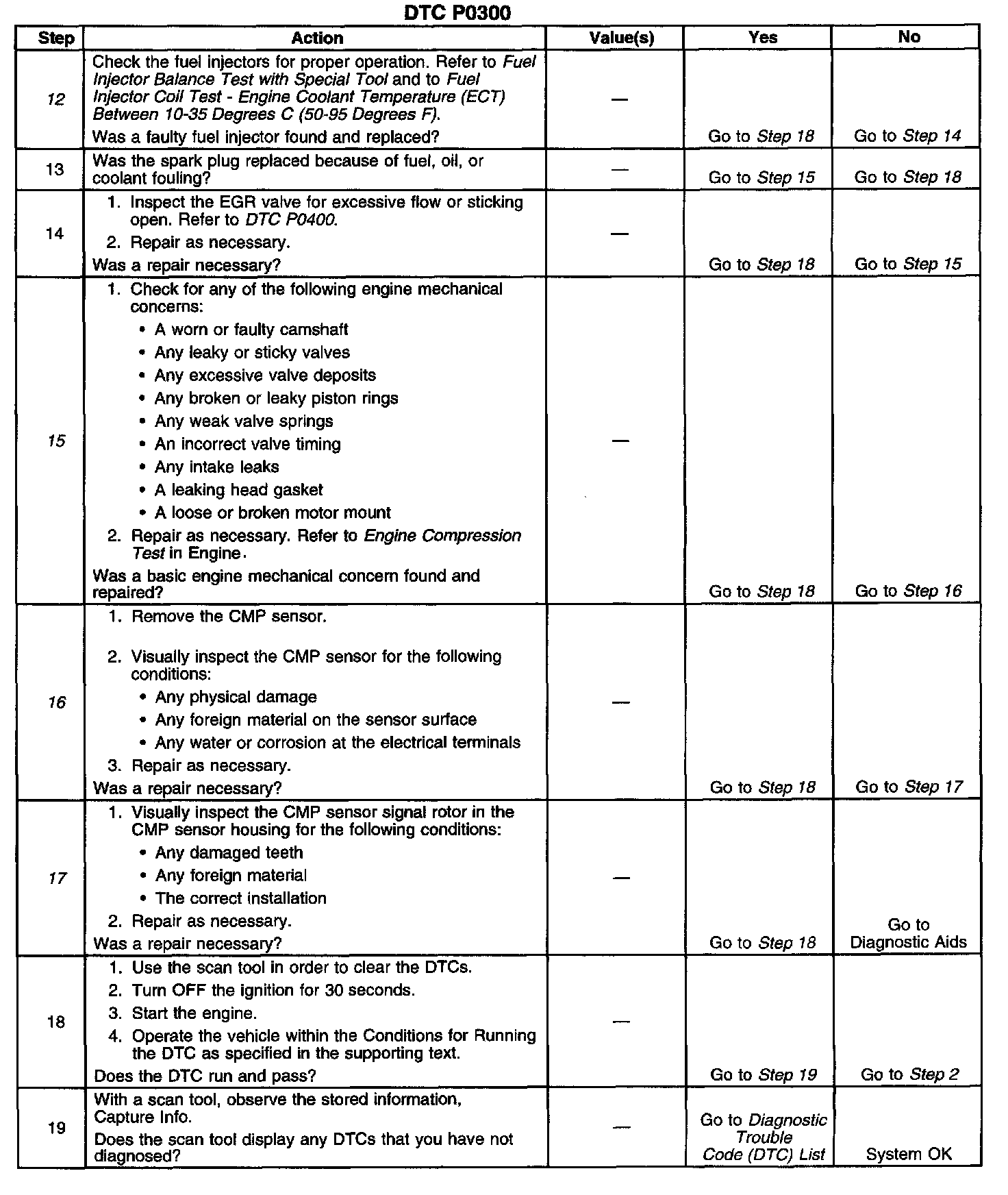 16. This step checks for faults in the CMP sensor and circuit that can cause incorrect ignition reference signals. Without continuous accurate reference signals, there is no dependable spark or fuel injector pulse. Erratic, missing, or incorrect engine reference signals can cause the engine to misfire.