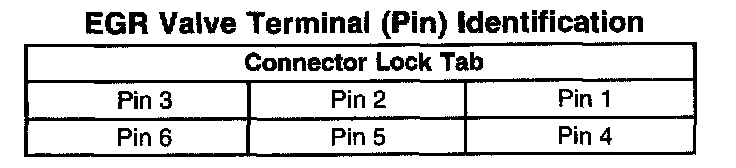 Use the above table in order to locate the correct terminals to test during diagnosis. The table layout corresponds to the pin location of the EGR valve electrical terminals.
