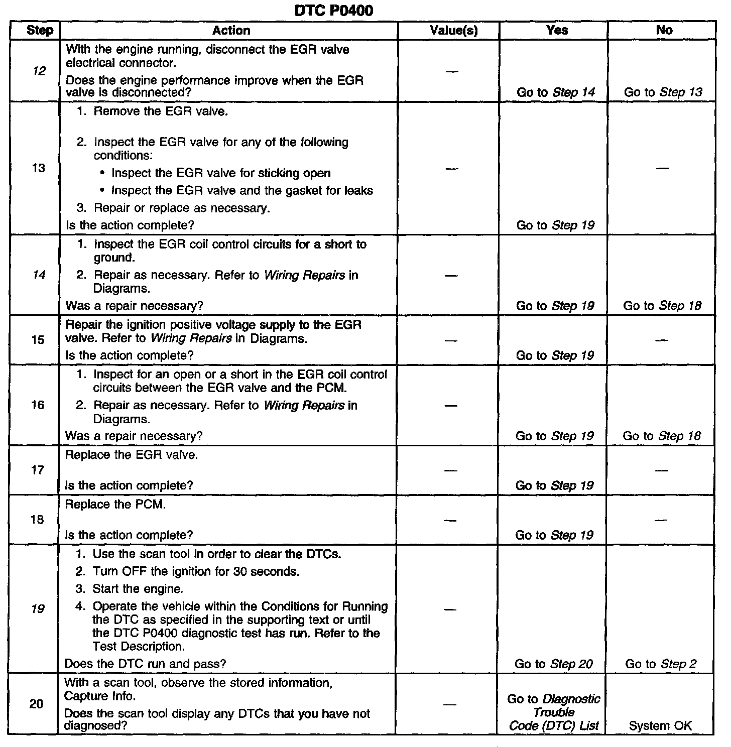 14. This step checks for an EGR valve control circuit that is shorted to ground. If the circuit wiring is OK, a faulty PCM with an internally shorted circuit can cause the EGR valve to be open.