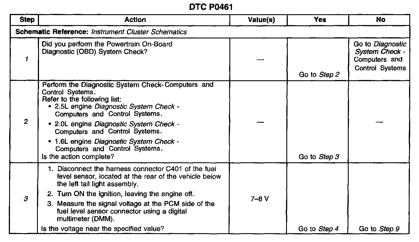 ^ A stuck fuel level sensor may cause DTC P0461 to set.