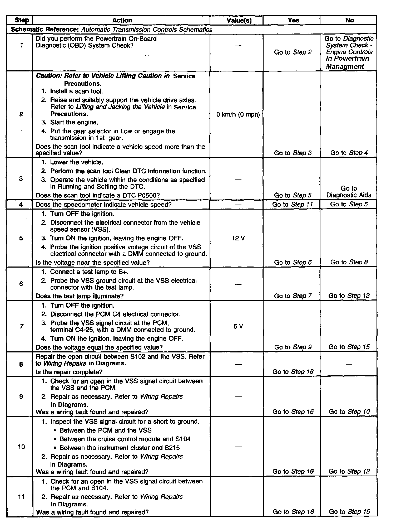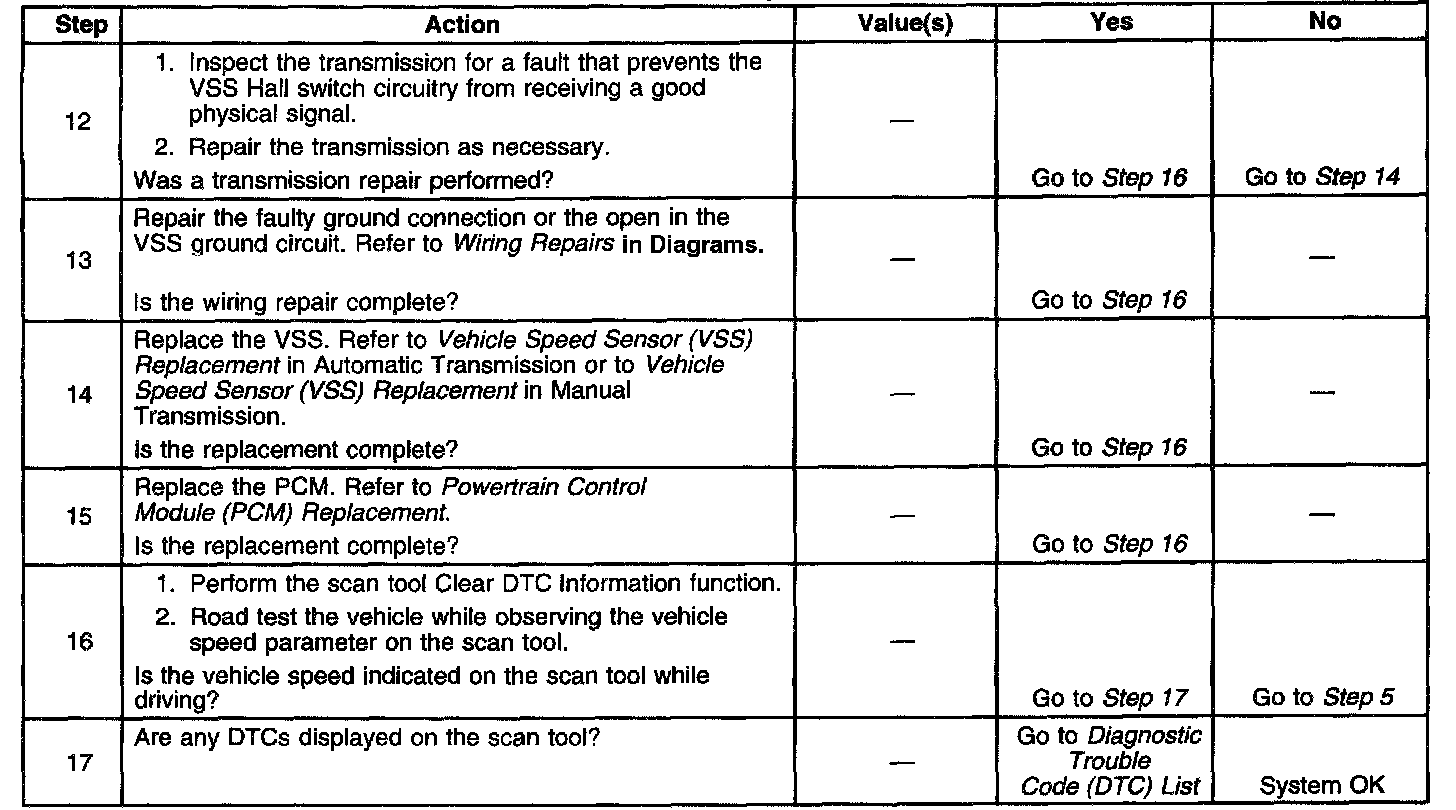 ^ No VSS signal is indicated. Action Taken When the DTC Sets