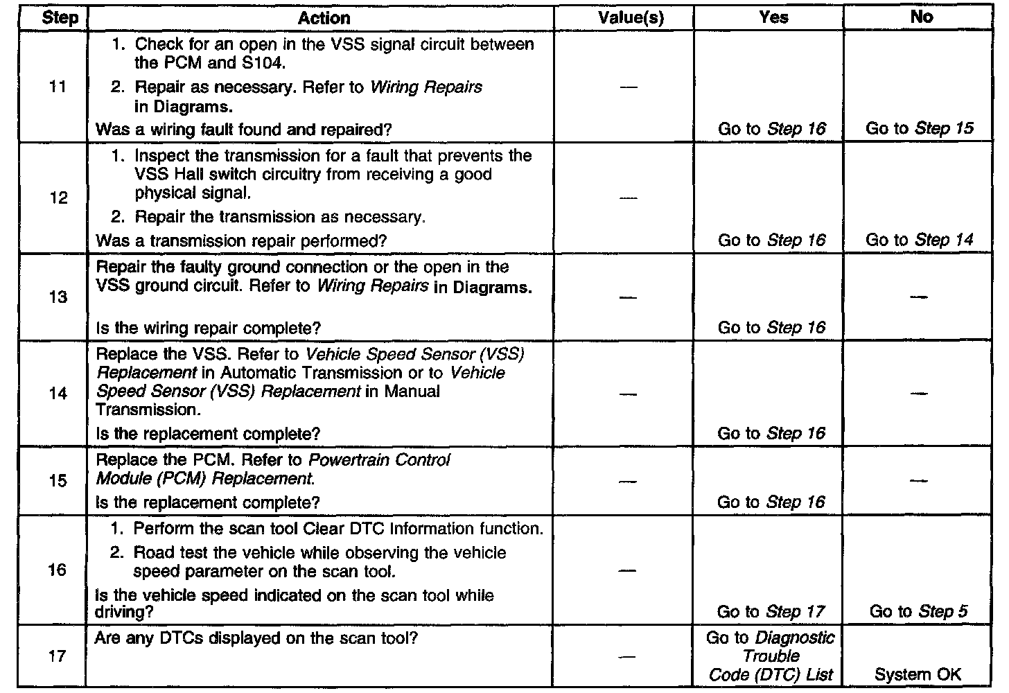The numbers below refer to the step numbers in the diagnostic table.
