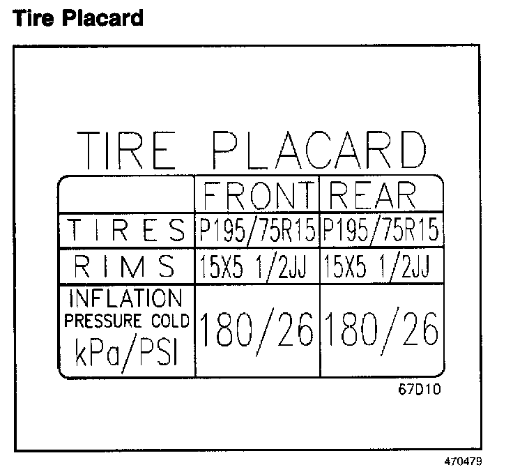 The tire placard is located on the left door lock pillar. Refer to the placard to obtain: