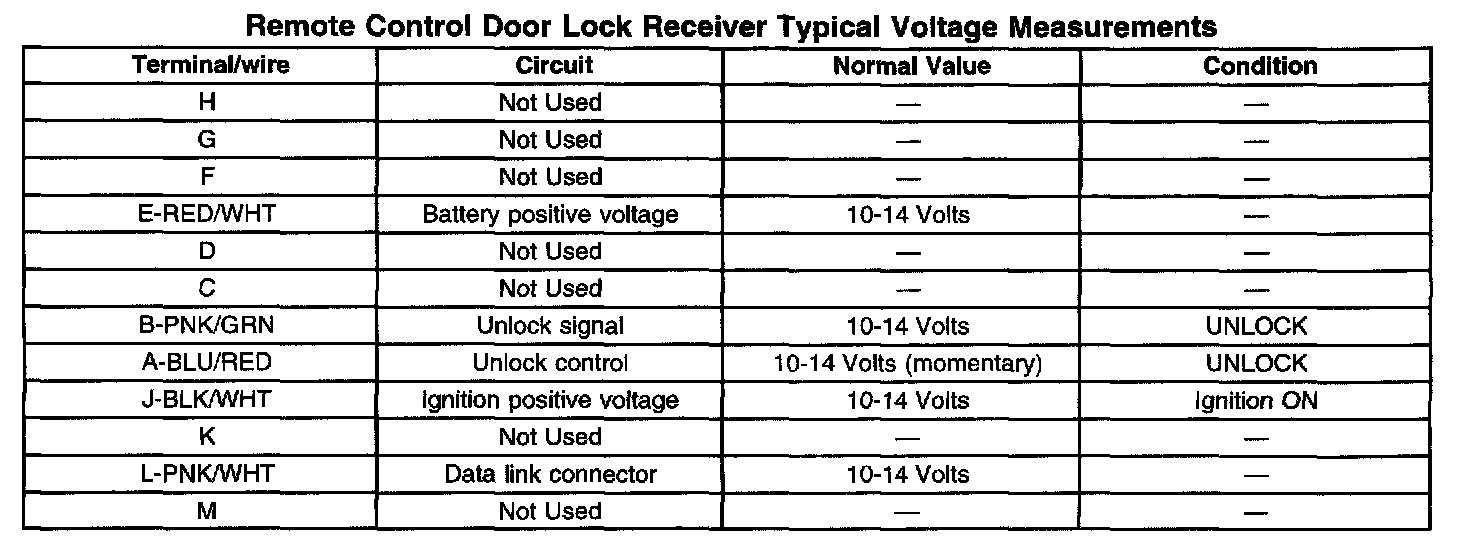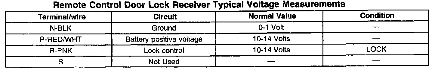 Remote Control Door Lock Receiver Typical Voltage Measurements (Part 1 Of 2):