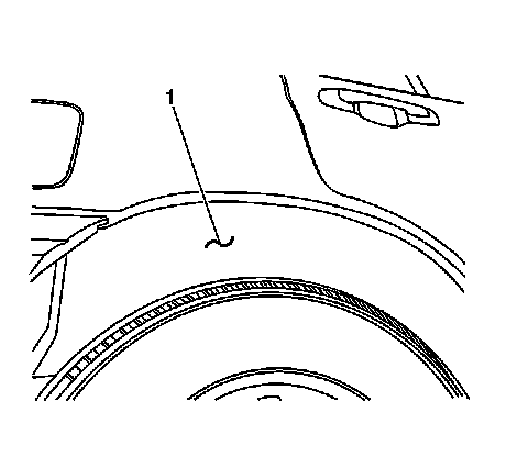 1. Install the rear wheelhouse panel liner (1) to the vehicle. Secure the liner with the 10 plastic retainers.