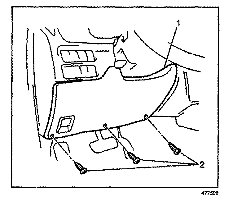 3. Install the IP steering column opening trim plate (1) to the instrument panel. Secure the trim plate with the 3 screws (2).
