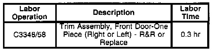 Remove the door trim panel and install an insulator, P/N 96052726, in the locations shown in illustration.