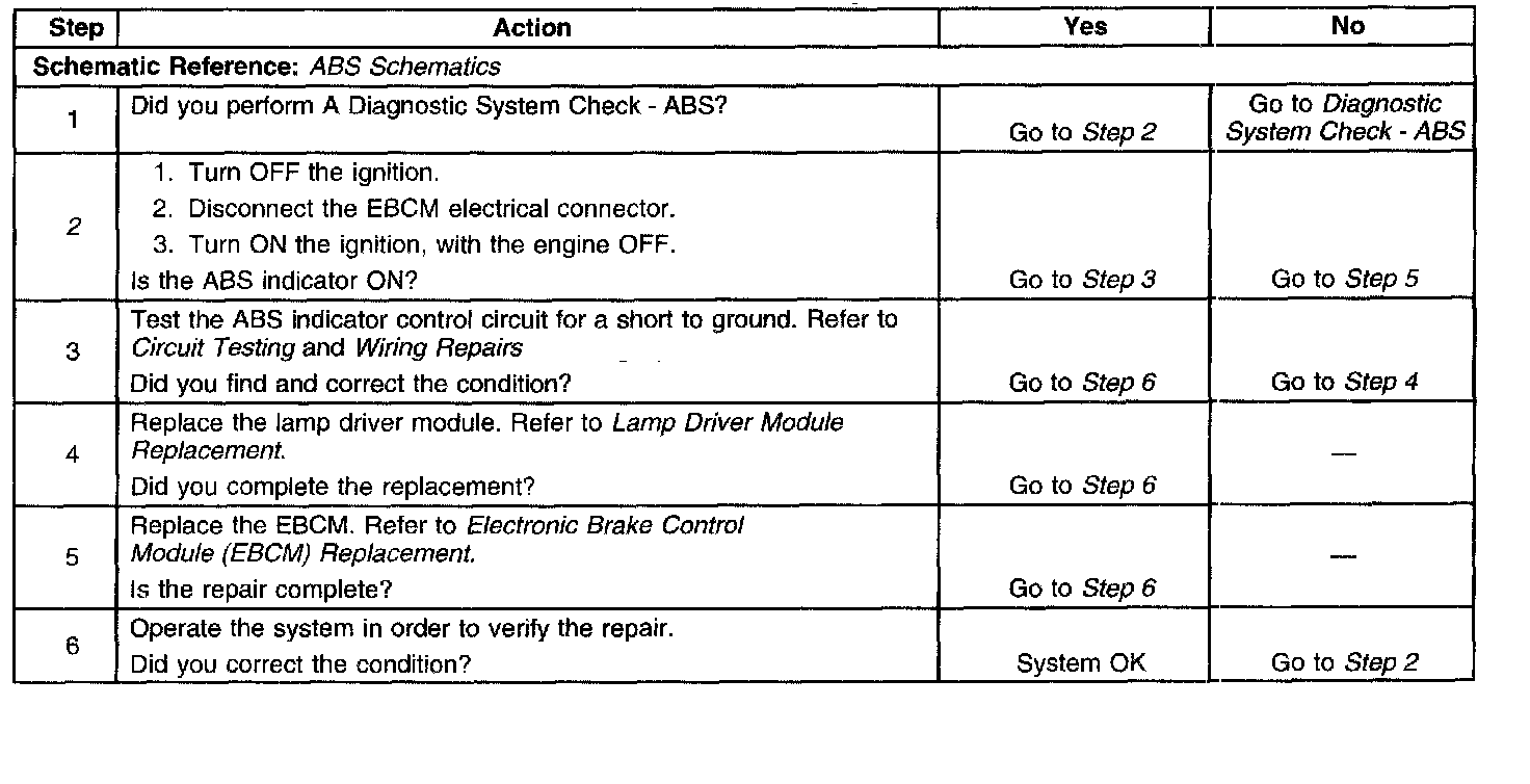 ^ A short to ground in the ABS indicator control circuit.
