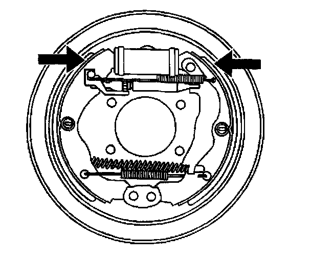 3. Using firm hand pressure, simultaneously and evenly apply force on both brake shoes in order to compress the wheel cylinder pistons into their bore.
