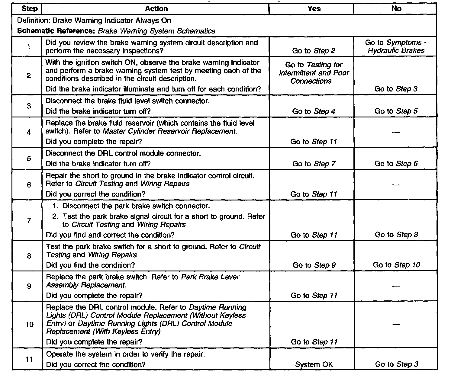 Brake Warning Indicator Always On