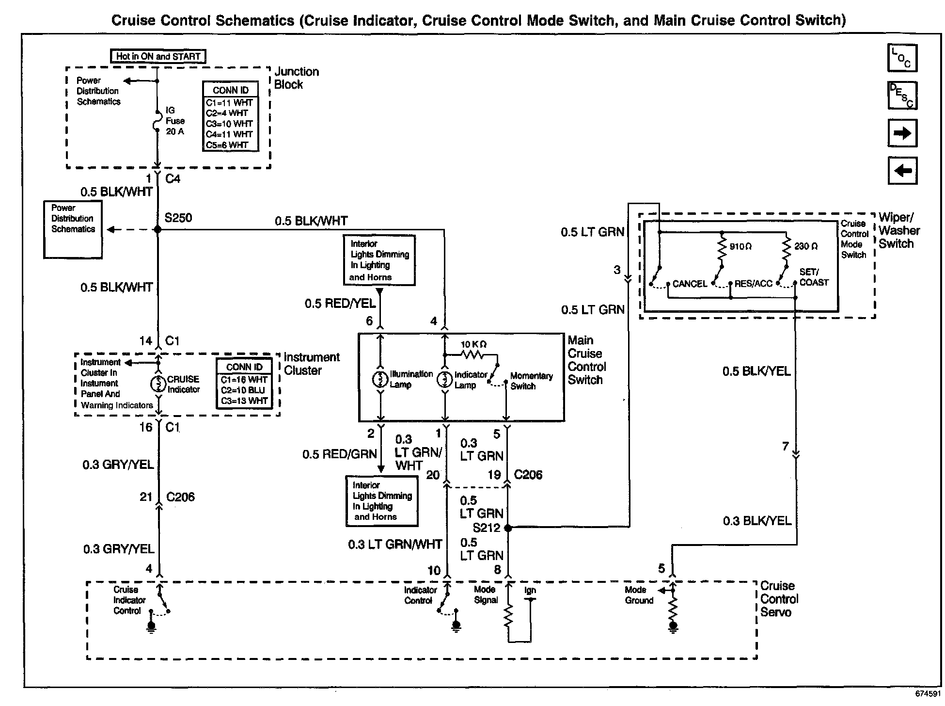 Cruise Control Schematics: Cruise Indicator, Cruise Control Mode Switch, And Main Cruise Control Switch: