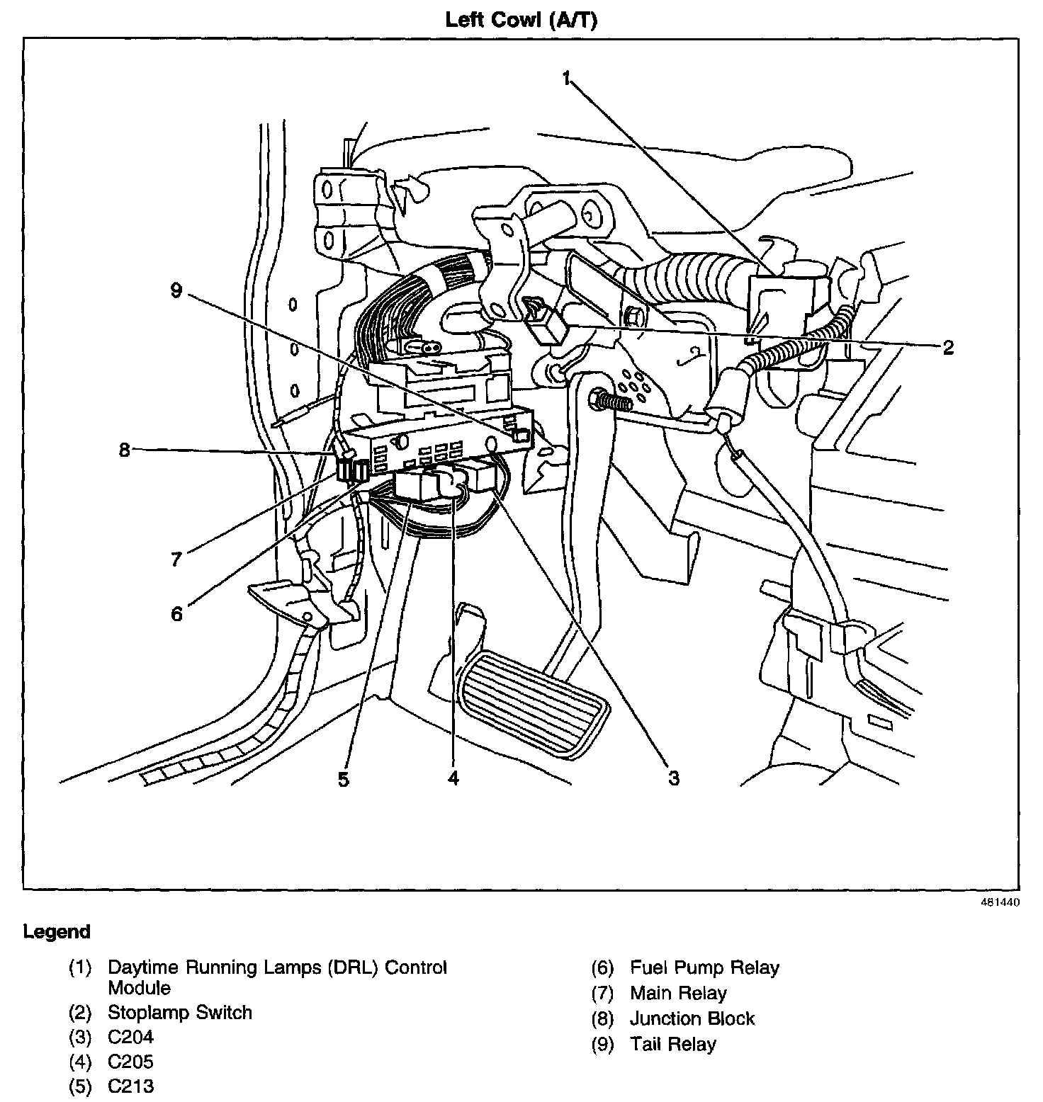 Above the lower left door hinge trim panel