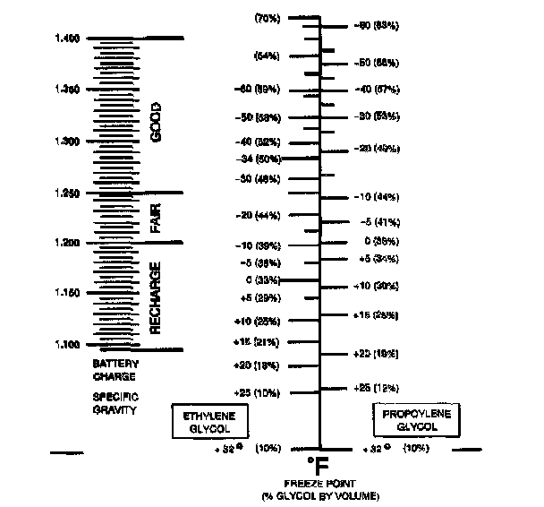 - The coolant protection reading is at the point where the dividing line between light and dark crosses the scale (antifreeze protection is the scale on the right).