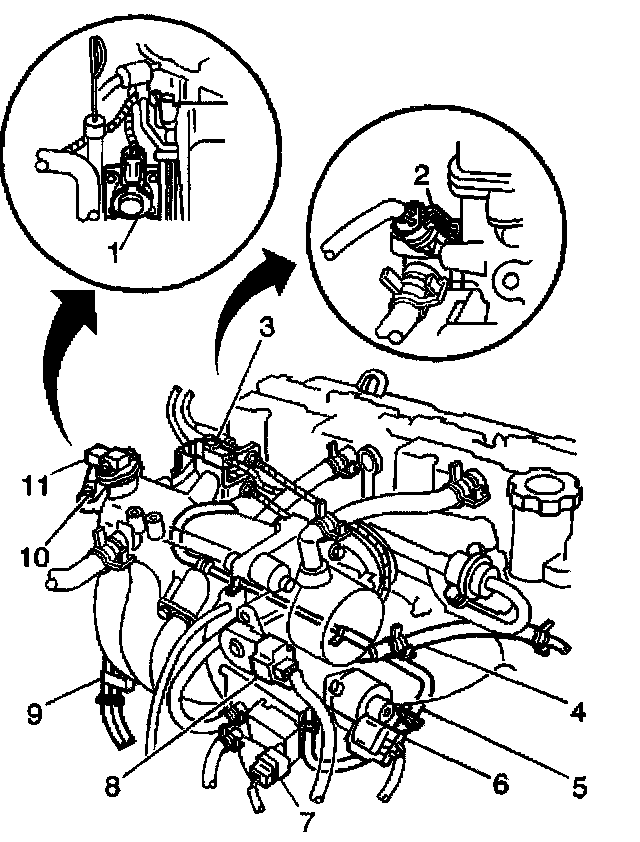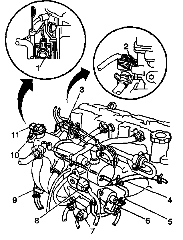 - The EVAP canister purge valve (7)