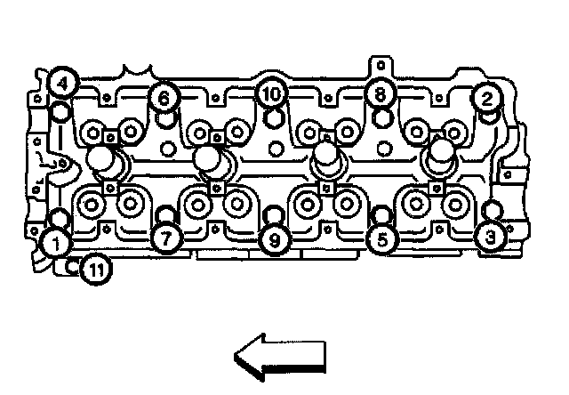 33. Remove the 11 cylinder head bolts in the sequence shown.
