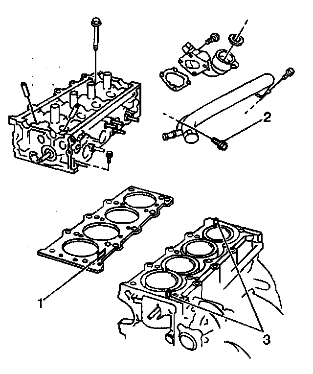 2. Install the cylinder head dowel pins (3).