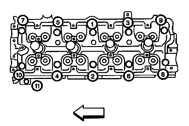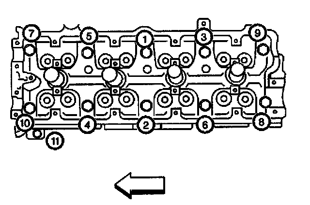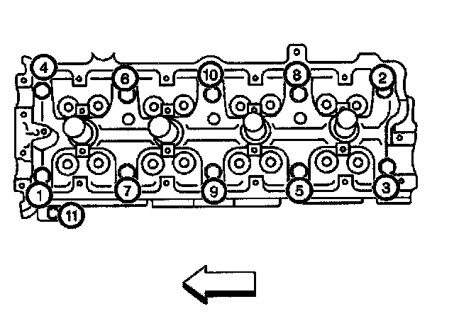 7. Loosen the cylinder head bolts in the sequence shown to 0 torque.