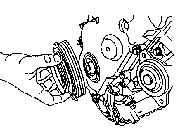 1. Lubricate the front seal and the sealing surface of the crankshaft pulley with Chassis Grease GM P/N 1057344 or equivalent.