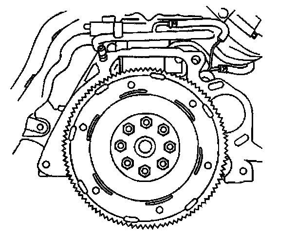 2. Apply GM P/N 12345493, or the equivalent, to the flywheel retaining bolt threads.