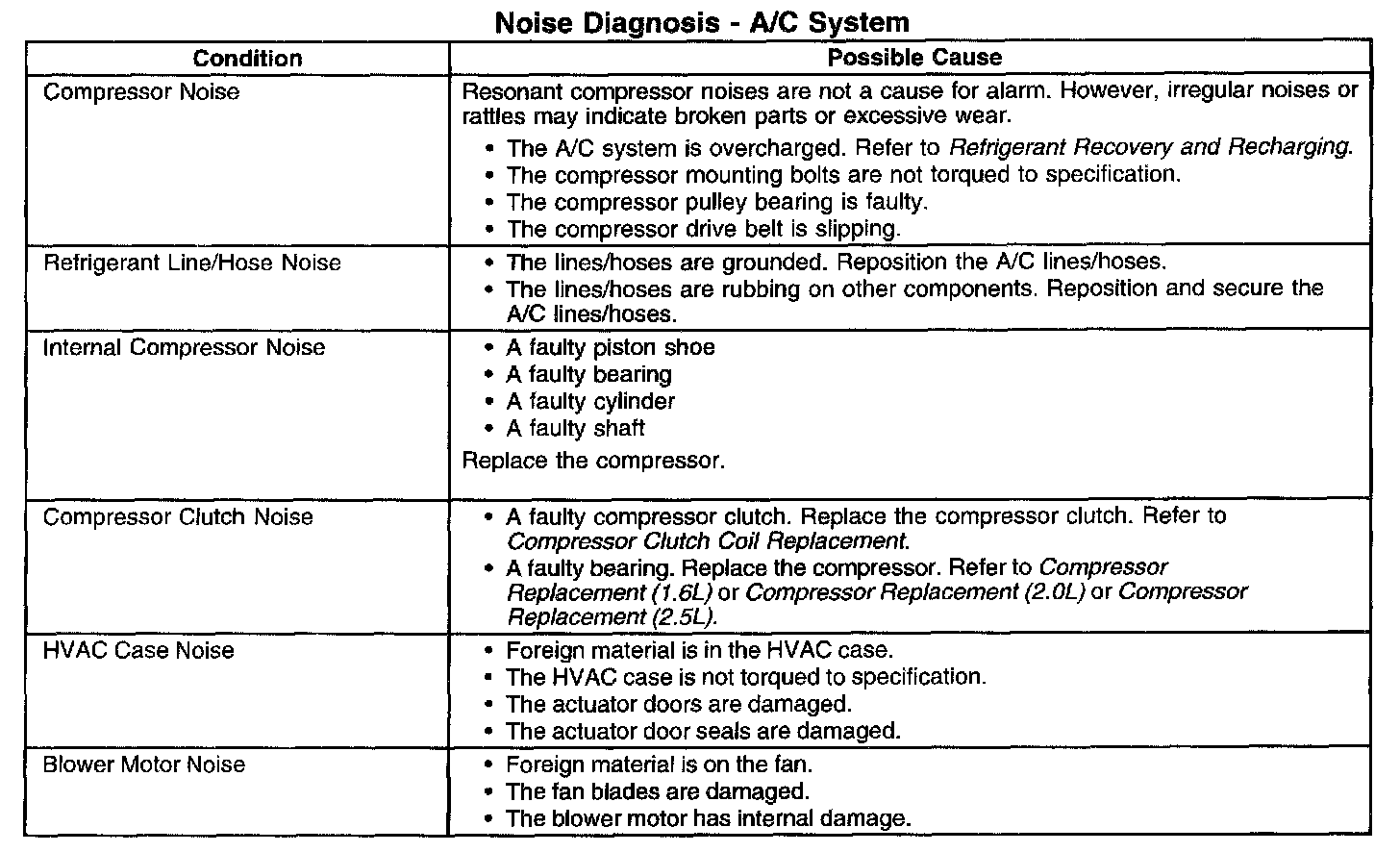 Noise Diagnosis - A/C System