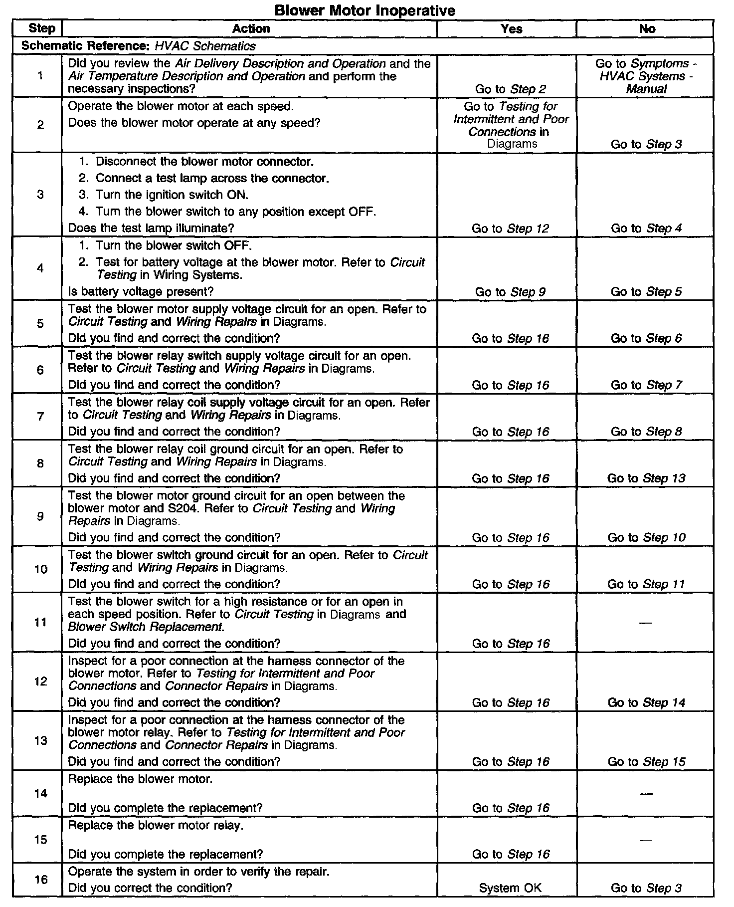Blower Motor Inoperative
