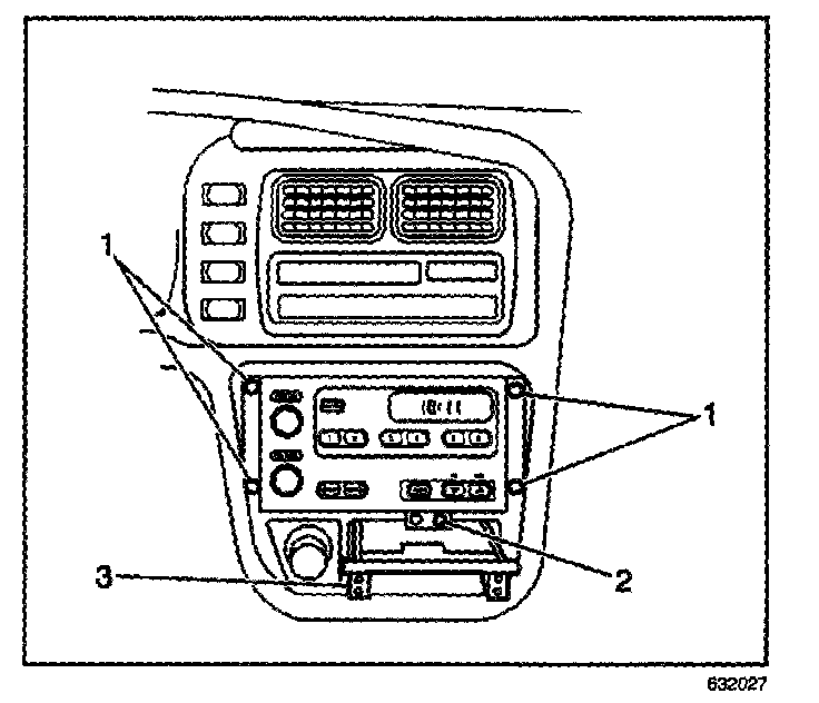 2. Install the ashtray lamp housing to the instrument panel. Secure the housing with the screw (2).