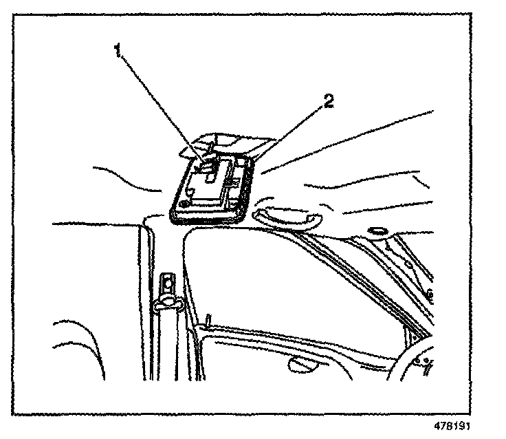 4. Lower the dome lamp assembly (2) from the roof.