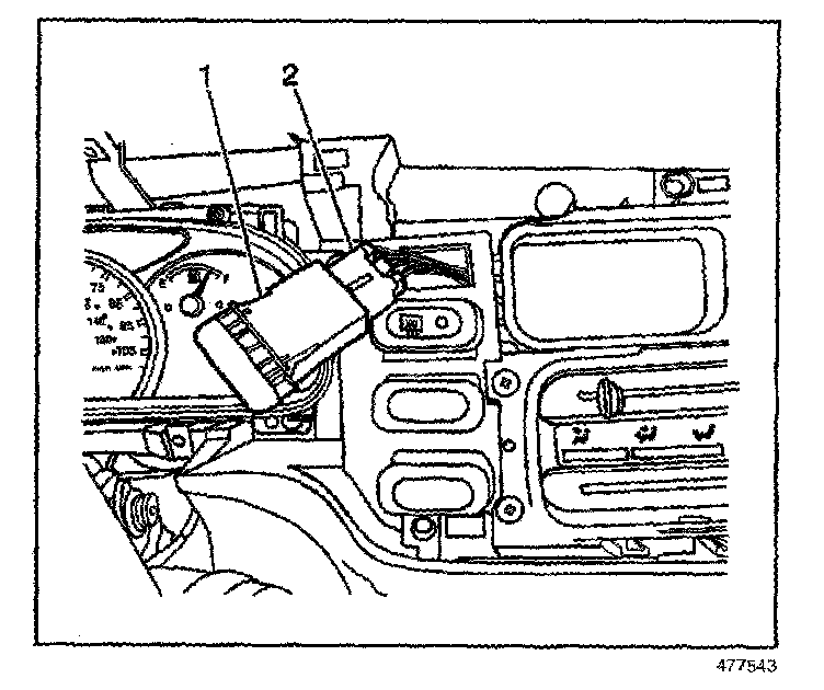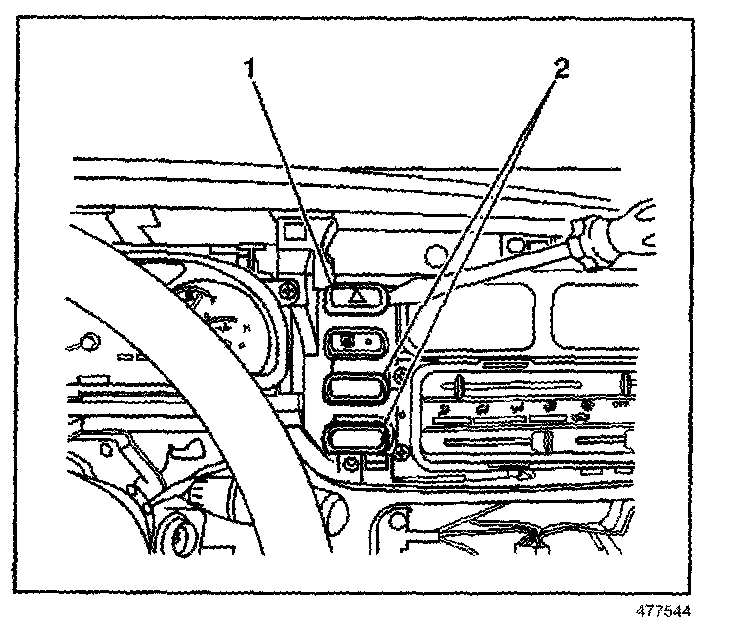 2. Using a taped flat bladed tool gently pry the hazard warning switch (1) from the instrument panel.