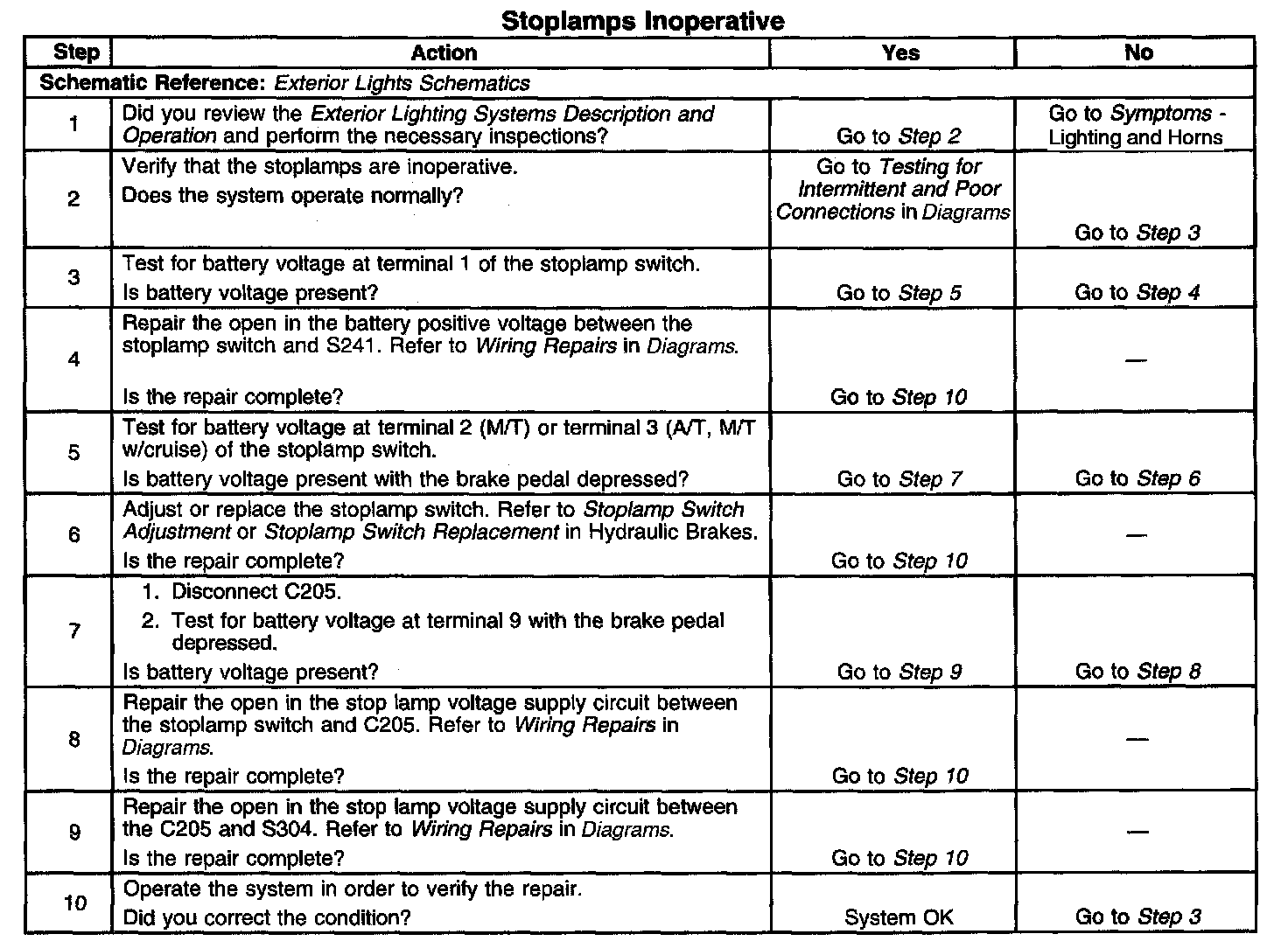 Stoplamps Inoperative