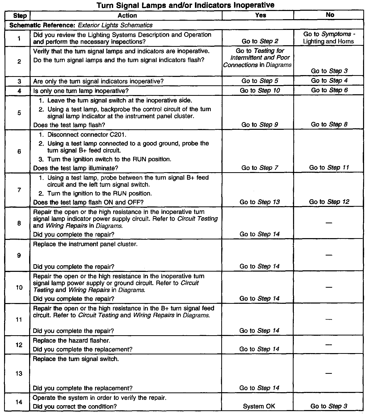 Turn Signal Lamps and/or Indicator Inoperative