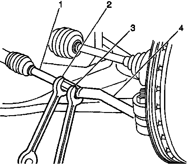 3. Rotate the left tie rod (1) and the right tie rod by the same amount.