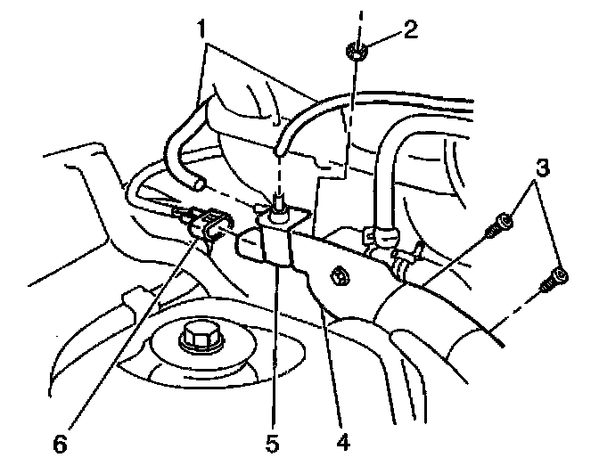 1. Install the EVAP tank pressure control valve (5) to the vehicle with the nut (2).