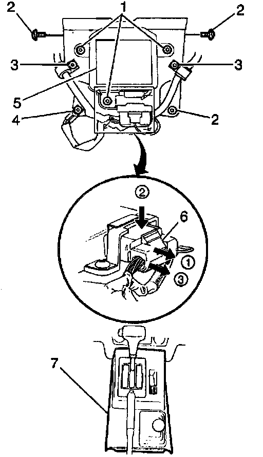 2. Remove the rear console and then remove the front console in order to access the SDM (1).