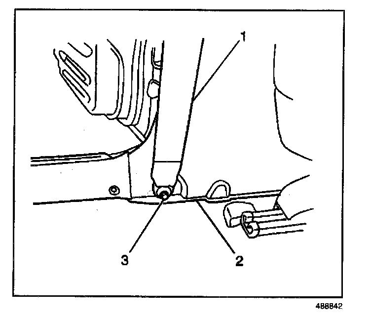 5. Install the front seat belt (3) to the vehicle. Secure the seat belt with the following fasteners:
