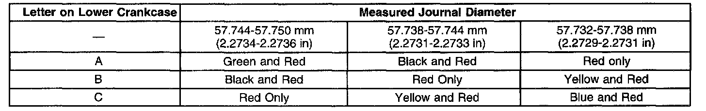 Undersize Main Bearing Selection Table