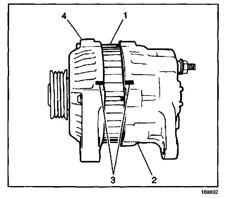 3. Remove the four generator housing bolts (1,3) from the front housing.