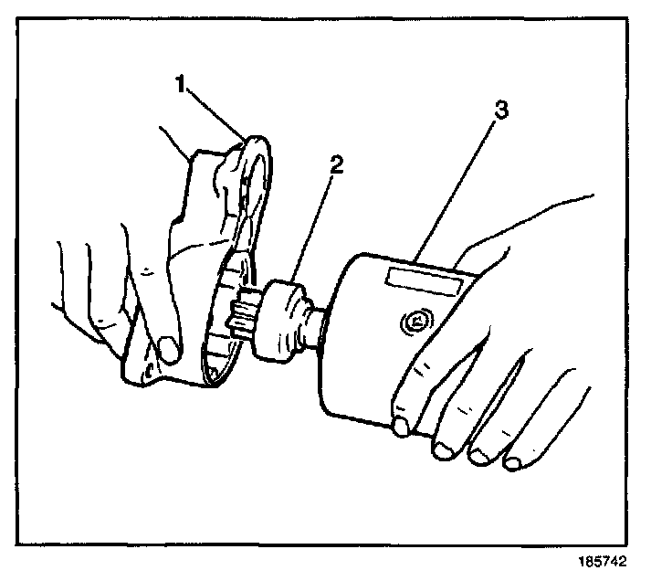 13. Remove the idle gear retainer (2) and three idle gears (3) from the drive housing (1).