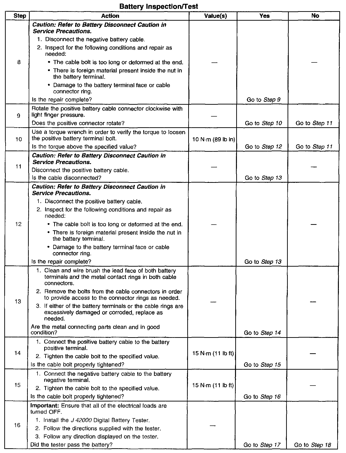 ^ If the tester displays a REPLACE BATTERY result for a battery tested in the vehicle with the battery cables connected, perform the following steps: