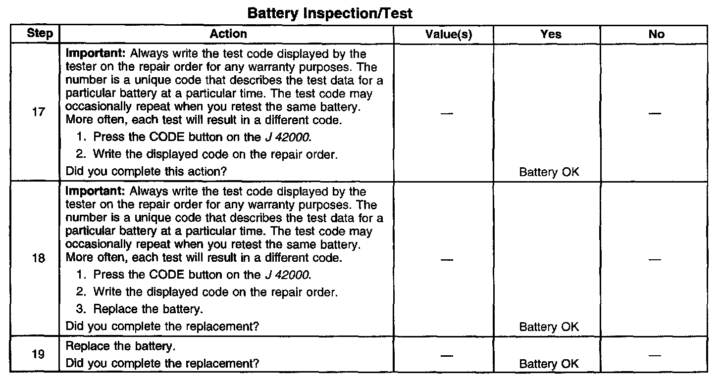 5. Replace the battery only if the second test shows a REPLACE BATTERY result.