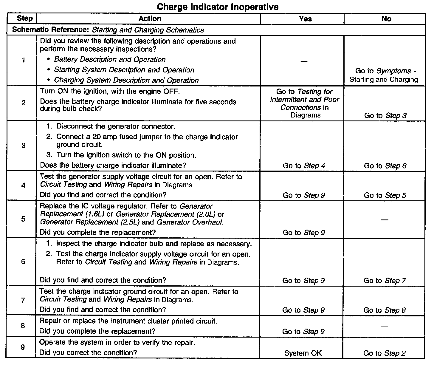 Charge Indicator Inoperative