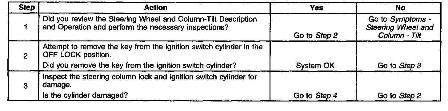 Key Cannot Be Removed In the Off Lock Position - Tilt Column