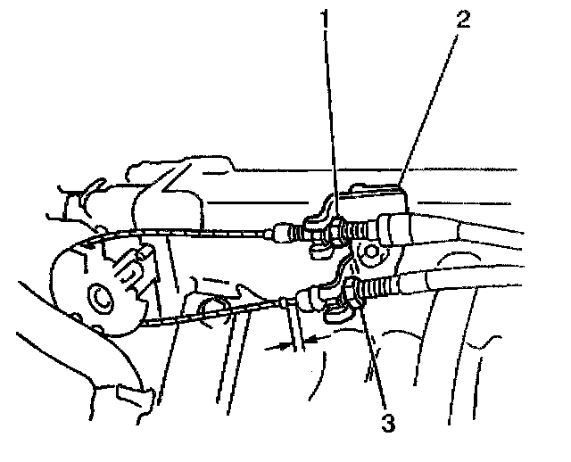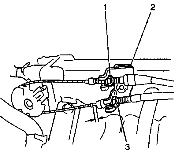 9. Install the TV cable casing (2) into the TV cable bracket (1) at the throttle body.