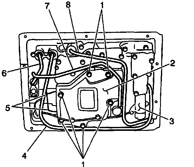 6. Remove the 3 fluid pipes in the following order: 7, 4 and 8.