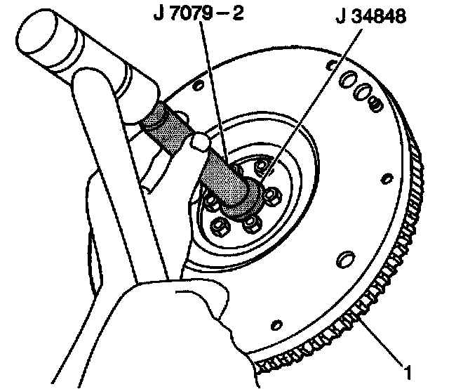 2. Install the clutch disc and the pressure plate to the flywheel (1) .